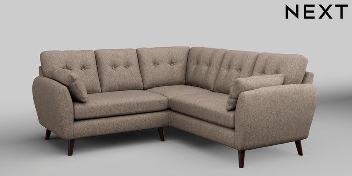 6.12.1 Buy Wilson Buttoned Back Small Corner Sofa - Universal Tweedy Chenille Mid Natural Retro Tapered - Dark Brown from the Next UK online shop Click here to use our accessible website