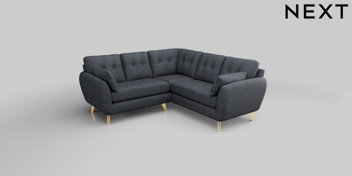 6.12.1 Buy Wilson Buttoned Back Small Corner Sofa - Universal Tweedy Chenille Navy Blue Metal Tapered - Gold from the Next UK online shop Click here to use our accessible website