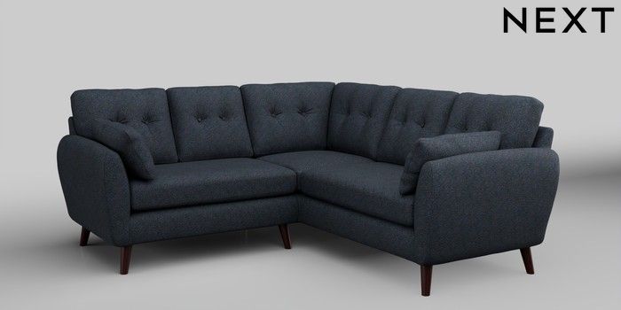 6.12.1 Buy Wilson Buttoned Back Small Corner Sofa - Universal Tweedy Chenille Navy Blue Retro Tapered - Dark Brown from the Next UK online shop Click here to use our accessible website