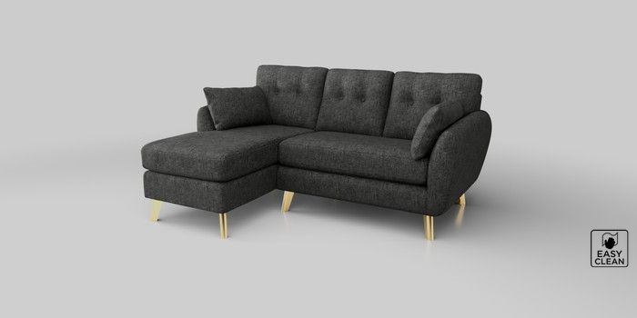 6.12.1 Buy Wilson Buttoned Back Small Sofa Chaise - Left Hand Boucle Weave Easy Clean Charcoal Grey Metal Tapered - Gold from the Next UK online shop Click here to use our accessible website