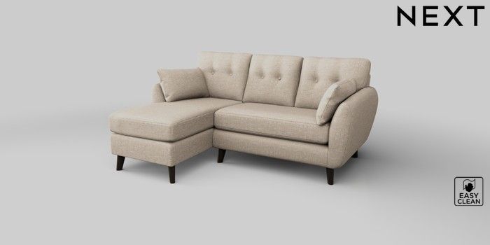 6.12.1 Buy Wilson Buttoned Back Small Sofa Chaise - Left Hand Boucle Weave Easy Clean Dark Natural Retro Tapered - Dark from the Next UK online shop Click here to use our accessible website