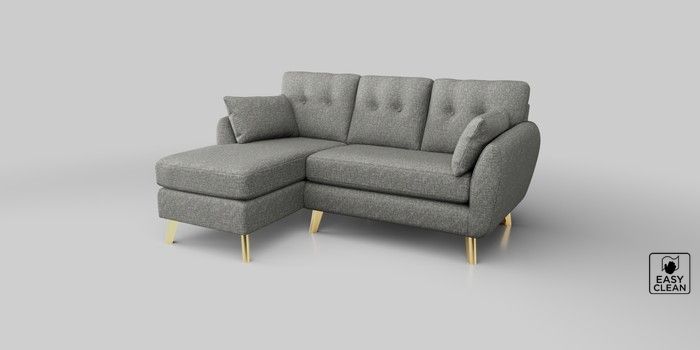 6.12.1 Buy Wilson Buttoned Back Small Sofa Chaise - Left Hand Chunky Boucle Easy Clean Mid Grey Metal Tapered - Gold from the Next UK online shop Click here to use our accessible website