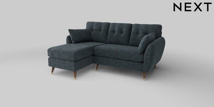 6.12.1 Buy Wilson Buttoned Back Small Sofa Chaise - Left Hand Chunky Chenille Dark Navy Blue Low Retro Tapered Metal Cap - Mid from the Next UK online shop Click here to use our accessible website