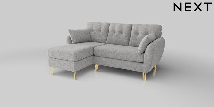 6.12.1 Buy Wilson Buttoned Back Small Sofa Chaise - Left Hand Chunky Chenille Light Grey Metal Tapered - Gold from the Next UK online shop Click here to use our accessible website