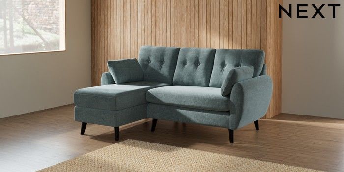 7.2.10 Buy Wilson Buttoned Back Small Sofa Chaise - Left Hand Chunky Chenille Light Teal Green Retro Tapered - Dark from the Next UK online shop Click here to use our accessible website