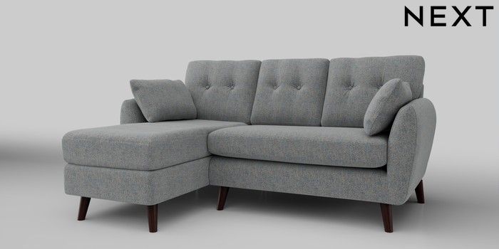 6.12.1 Buy Wilson Buttoned Back Small Sofa Chaise - Left Hand Chunky Marl Mid Grey Retro Tapered - Dark Brown from the Next UK online shop Click here to use our accessible website