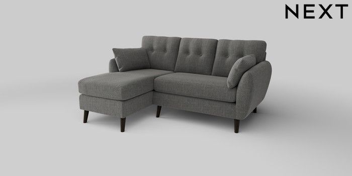 6.12.1 Buy Wilson Buttoned Back Small Sofa Chaise - Left Hand Chunky Texture Dark Grey Retro Tapered - Dark from the Next UK online shop Click here to use our accessible website