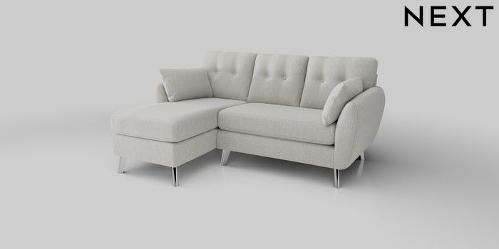 6.12.1 Buy Wilson Buttoned Back Small Sofa Chaise - Left Hand Chunky Texture Dove Metal Tapered - Chrome from the Next UK online shop Click here to use our accessible website
