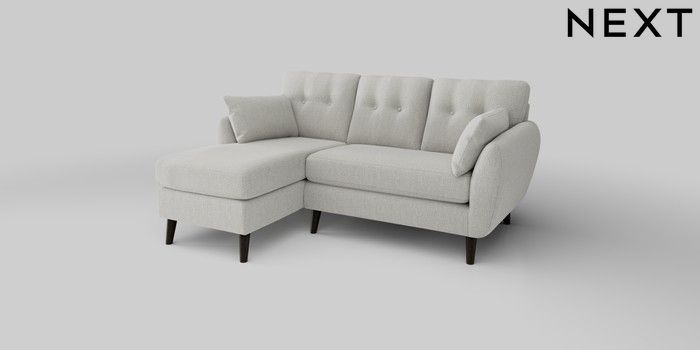 6.12.1 Buy Wilson Buttoned Back Small Sofa Chaise - Left Hand Chunky Texture Dove Retro Tapered - Dark from the Next UK online shop Click here to use our accessible website