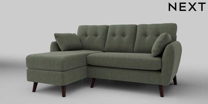 6.12.1 Buy Wilson Buttoned Back Small Sofa Chaise - Left Hand Chunky Texture Mid Forest Green Retro Tapered - Dark Brown from the Next UK online shop Click here to use our accessible website