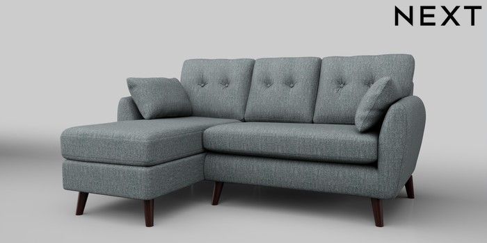 6.12.1 Buy Wilson Buttoned Back Small Sofa Chaise - Left Hand Chunky Weave Mid Blue Retro Tapered - Dark Brown from the Next UK online shop Click here to use our accessible website