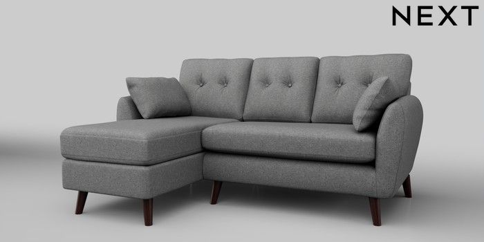 6.12.1 Buy Wilson Buttoned Back Small Sofa Chaise - Left Hand Chunky Weave Mid Grey Retro Tapered - Dark Brown from the Next UK online shop Click here to use our accessible website