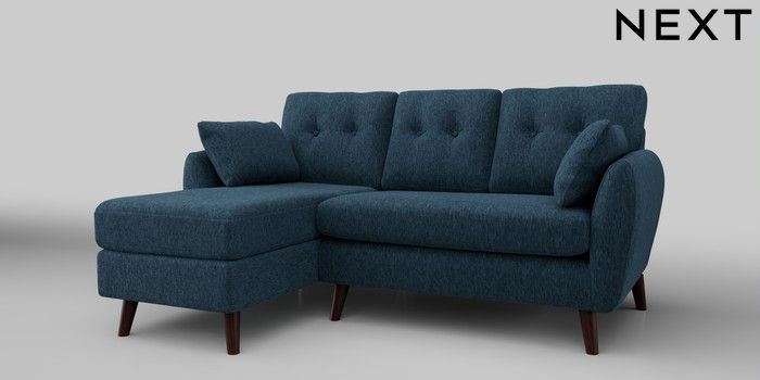 6.12.1 Buy Wilson Buttoned Back Small Sofa Chaise - Left Hand Cotswold Chenille Dark Blue Retro Tapered - Dark Brown from the Next UK online shop Click here to use our accessible website