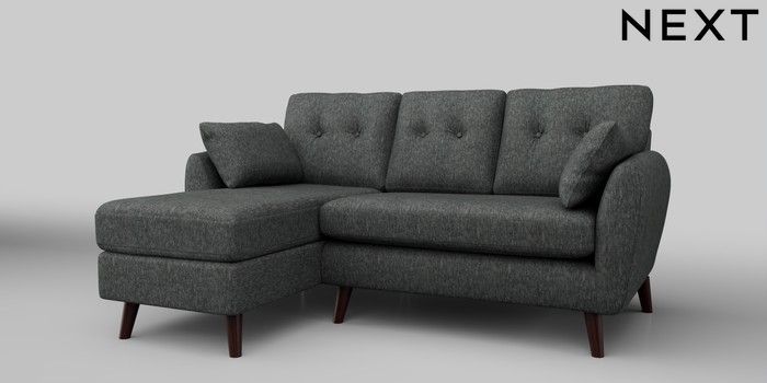 6.12.1 Buy Wilson Buttoned Back Small Sofa Chaise - Left Hand Cotswold Chenille Dark Grey Retro Tapered - Dark Brown from the Next UK online shop Click here to use our accessible website