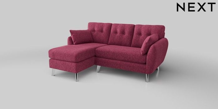 6.12.1 Buy Wilson Buttoned Back Small Sofa Chaise - Left Hand Cotswold Chenille Dark Raspberry Pink Metal Tapered - Chrome from the Next UK online shop Click here to use our accessible website