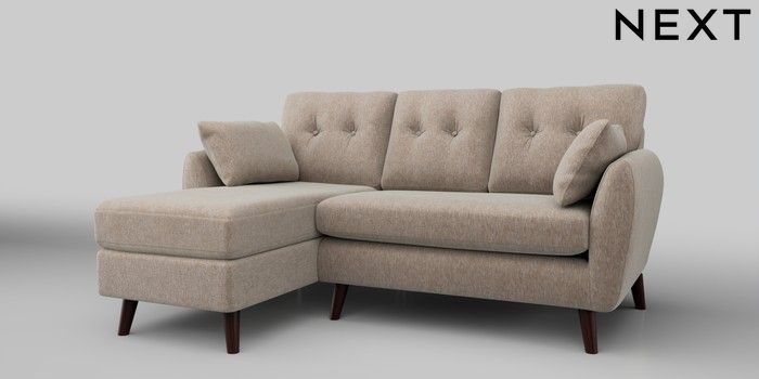 6.12.1 Buy Wilson Buttoned Back Small Sofa Chaise - Left Hand Cotswold Chenille Light Natural Retro Tapered - Dark Brown from the Next UK online shop Click here to use our accessible website