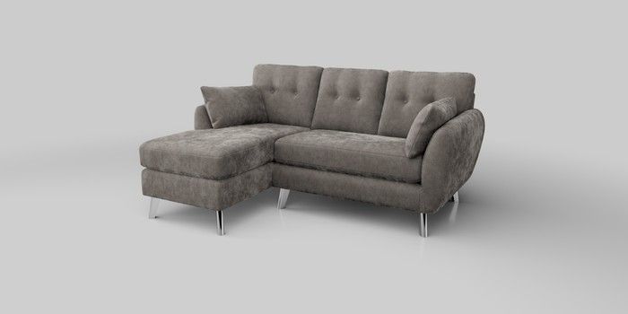6.12.1 Buy Wilson Buttoned Back Small Sofa Chaise - Left Hand Distressed Velour French Grey Metal Tapered - Chrome from the Next UK online shop Click here to use our accessible website
