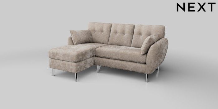 6.12.1 Buy Wilson Buttoned Back Small Sofa Chaise - Left Hand Distressed Velour Mid Natural Metal Tapered - Chrome from the Next UK online shop Click here to use our accessible website