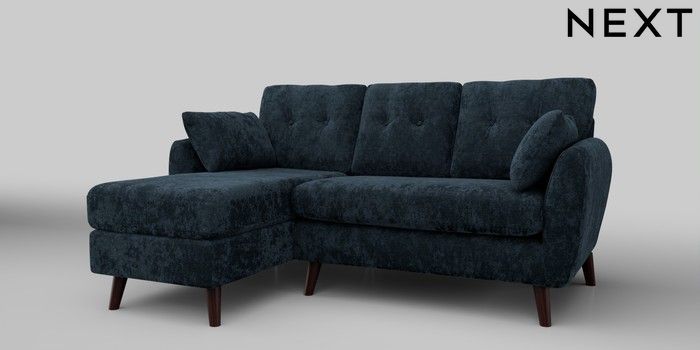 6.12.1 Buy Wilson Buttoned Back Small Sofa Chaise - Left Hand Distressed Velour Midnight Blue Retro Tapered - Dark Brown from the Next UK online shop Click here to use our accessible website