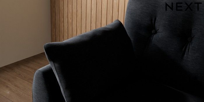 7.3.1 Buy Wilson Buttoned Back Small Sofa Chaise - Left Hand Fine Chenille Easy Clean Black Retro Tapered - Dark from the Next UK online shop Click here to use our accessible website