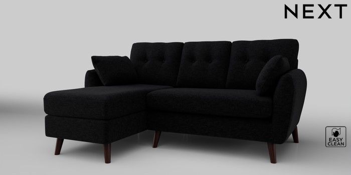 6.12.1 Buy Wilson Buttoned Back Small Sofa Chaise - Left Hand Fine Chenille Easy Clean Black Retro Tapered - Dark Brown from the Next UK online shop Click here to use our accessible website