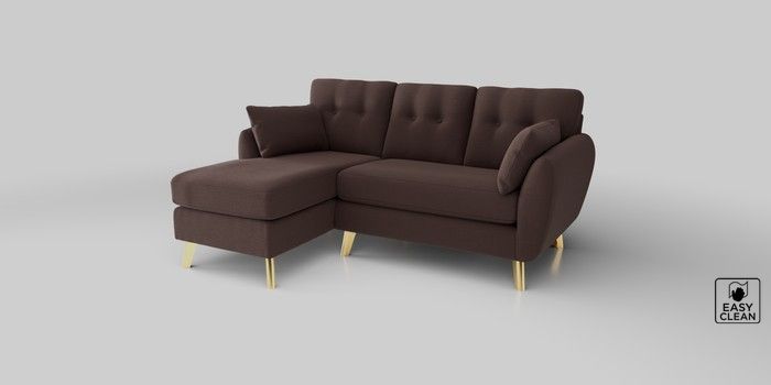 6.12.1 Buy Wilson Buttoned Back Small Sofa Chaise - Left Hand Fine Chenille Easy Clean Chocolate Brown Metal Tapered - Gold from the Next UK online shop Click here to use our accessible website