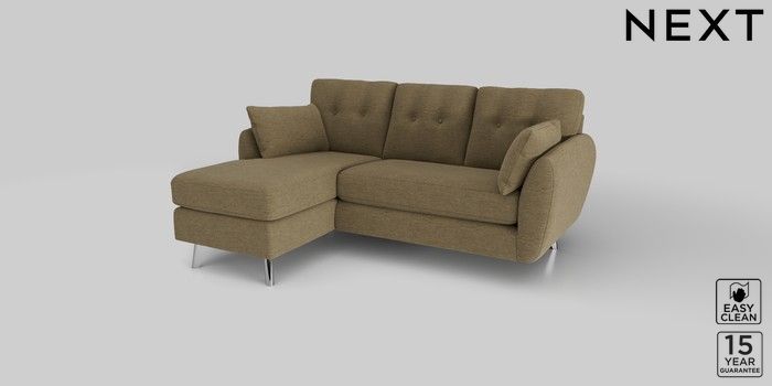 6.12.1 Buy Wilson Buttoned Back Small Sofa Chaise - Left Hand Fine Chenille Easy Clean Dark Moss Green Metal Tapered - Chrome from the Next UK online shop Click here to use our accessible website