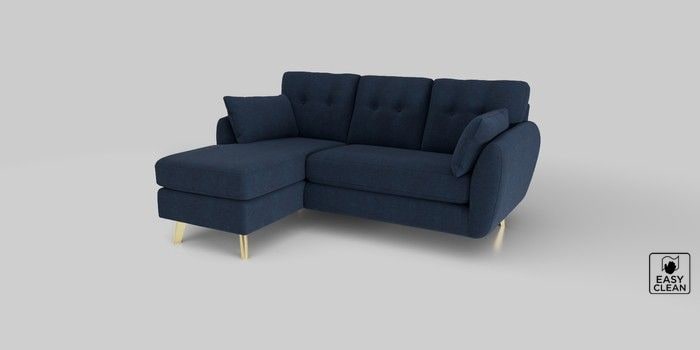 6.12.1 Buy Wilson Buttoned Back Small Sofa Chaise - Left Hand Fine Chenille Easy Clean Dark Navy Blue Metal Tapered - Gold from the Next UK online shop Click here to use our accessible website