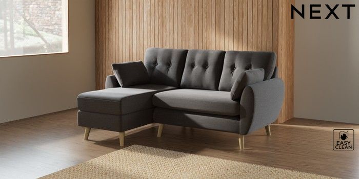 7.2.10 Buy Wilson Buttoned Back Small Sofa Chaise - Left Hand Fine Chenille Easy Clean Dark Smoke Grey Retro Tapered - Light from the Next UK online shop Click here to use our accessible website