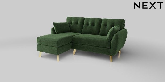 6.12.1 Buy Wilson Buttoned Back Small Sofa Chaise - Left Hand Luxe Chenille Dark Green Metal Tapered - Gold from the Next UK online shop Click here to use our accessible website