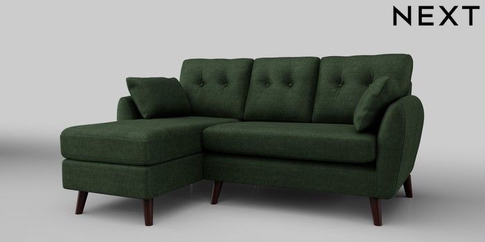 6.12.1 Buy Wilson Buttoned Back Small Sofa Chaise - Left Hand Luxe Chenille Dark Green Retro Tapered - Dark Brown from the Next UK online shop Click here to use our accessible website