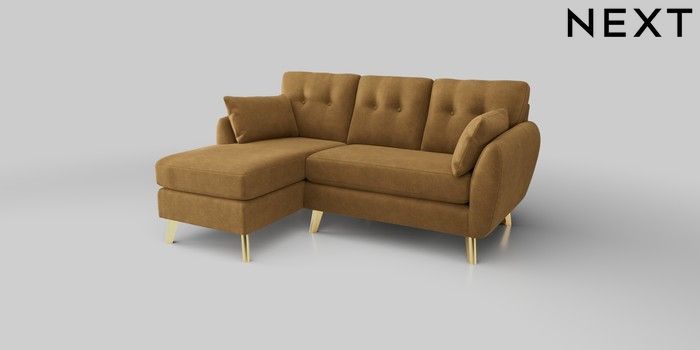 6.12.1 Buy Wilson Buttoned Back Small Sofa Chaise - Left Hand Luxe Chenille Honey Yellow Metal Tapered - Gold from the Next UK online shop Click here to use our accessible website