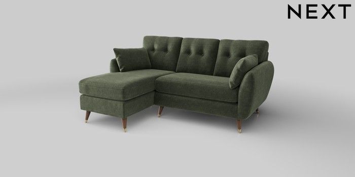 6.12.1 Buy Wilson Buttoned Back Small Sofa Chaise - Left Hand Luxe Chenille Mid Green Low Retro Tapered Metal Cap - Mid from the Next UK online shop Click here to use our accessible website