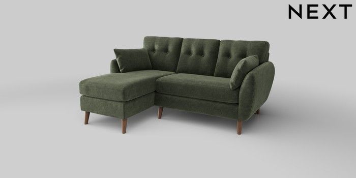6.12.1 Buy Wilson Buttoned Back Small Sofa Chaise - Left Hand Luxe Chenille Mid Green Retro Tapered - Mid from the Next UK online shop Click here to use our accessible website