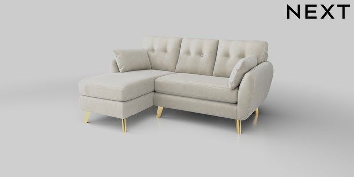 7.0.3 Buy Wilson Buttoned Back Small Sofa Chaise - Left Hand Luxe Chenille Oyster Metal Tapered - Gold from the Next UK online shop Click here to use our accessible website
