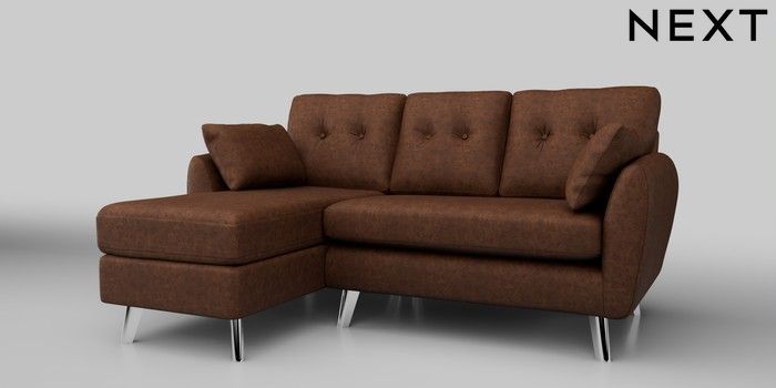 6.12.1 Buy Wilson Buttoned Back Small Sofa Chaise - Left Hand Monza Faux Leather Easy Clean Chestnut Brown Metal Tapered - Chrome from the Next UK online shop Click here to use our accessible website