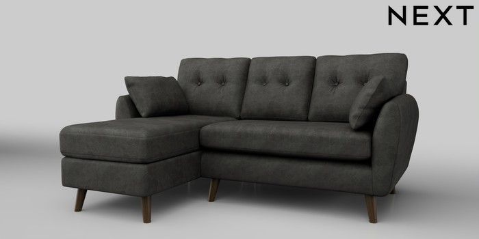 6.12.1 Buy Wilson Buttoned Back Small Sofa Chaise - Left Hand Monza Faux Leather Easy Clean Dark Grey Retro Tapered - Mid from the Next UK online shop Click here to use our accessible website