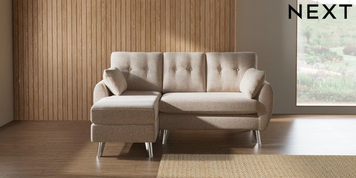 7.3.1 Buy Wilson Buttoned Back Small Sofa Chaise - Left Hand Multi Weave Mid Natural Metal Tapered - Chrome from the Next UK online shop