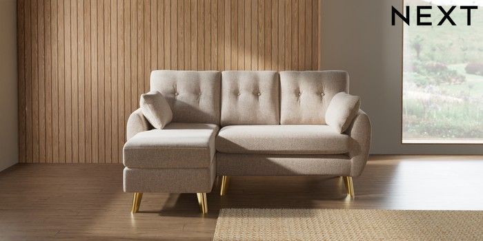 7.3.1 Buy Wilson Buttoned Back Small Sofa Chaise - Left Hand Multi Weave Mid Natural Metal Tapered - Gold from the Next UK online shop