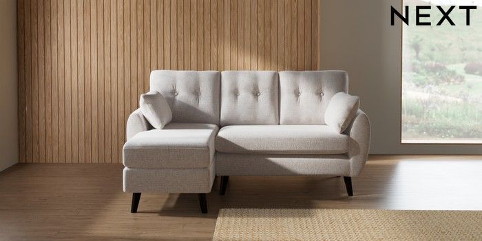 7.3.1 Buy Wilson Buttoned Back Small Sofa Chaise - Left Hand Multi Weave Oyster Retro Tapered - Dark from the Next UK online shop