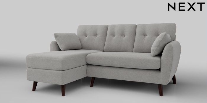 6.12.1 Buy Wilson Buttoned Back Small Sofa Chaise - Left Hand Natural Mix Light Grey Retro Tapered - Dark Brown from the Next UK online shop Click here to use our accessible website