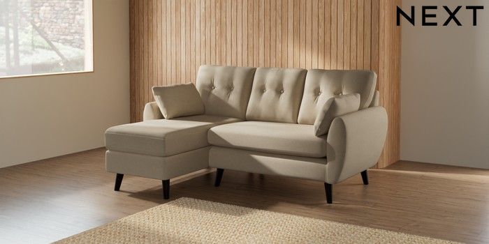 7.2.10 Buy Wilson Buttoned Back Small Sofa Chaise - Left Hand Natural Mix Light Natural Retro Tapered - Dark from the Next UK online shop Click here to use our accessible website