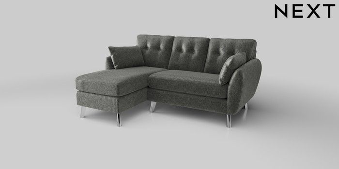 6.12.1 Buy Wilson Buttoned Back Small Sofa Chaise - Left Hand Plush Chenille Dark Grey Metal Tapered - Chrome from the Next UK online shop Click here to use our accessible website