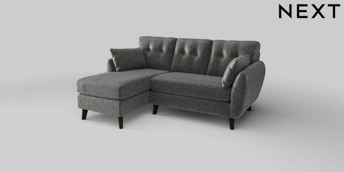 6.12.1 Buy Wilson Buttoned Back Small Sofa Chaise - Left Hand Plush Chenille Dark Grey Retro Tapered - Dark from the Next UK online shop Click here to use our accessible website