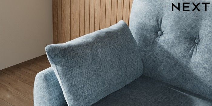 7.3.1 Buy Wilson Buttoned Back Small Sofa Chaise - Left Hand Plush Chenille Light Blue Low Retro Tapered Metal Cap - Mid from the Next UK online shop