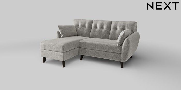 6.12.1 Buy Wilson Buttoned Back Small Sofa Chaise - Left Hand Plush Chenille Light Grey Retro Tapered - Dark from the Next UK online shop Click here to use our accessible website
