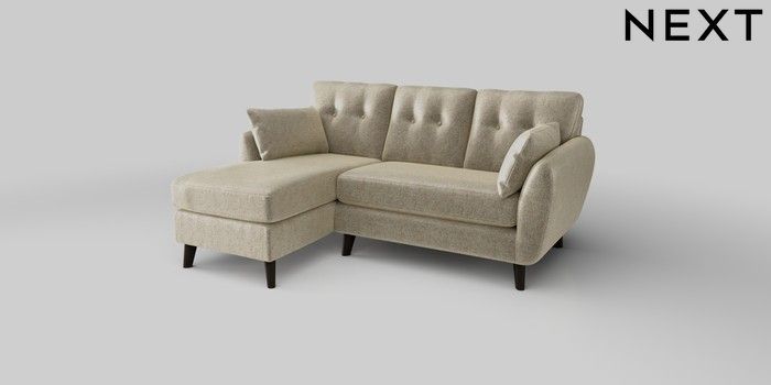 6.12.1 Buy Wilson Buttoned Back Small Sofa Chaise - Left Hand Plush Chenille Light Natural Retro Tapered - Dark from the Next UK online shop Click here to use our accessible website