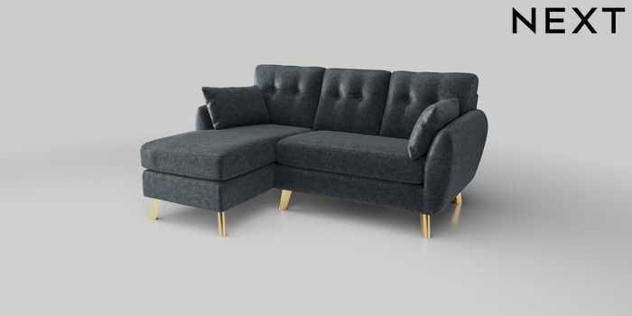 6.12.1 Buy Wilson Buttoned Back Small Sofa Chaise - Left Hand Plush Chenille Slate Blue Metal Tapered - Gold from the Next UK online shop Click here to use our accessible website