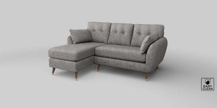 6.12.1 Buy Wilson Buttoned Back Small Sofa Chaise - Left Hand Chunky Boucle Easy Clean Light Grey Low Retro Tapered Metal Cap - Mid from the Next UK online shop Click here to use our accessible website