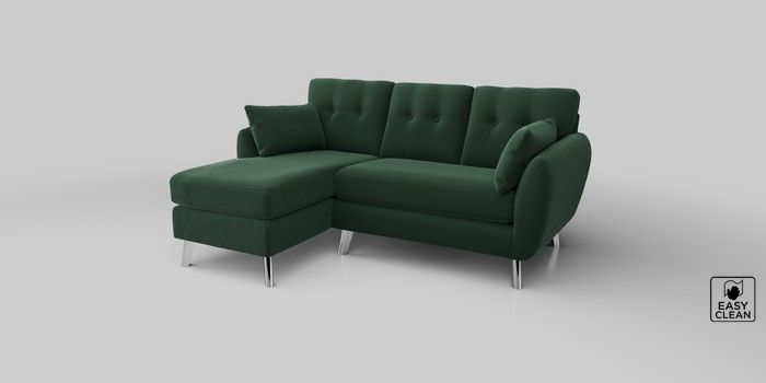 6.12.1 Buy Wilson Buttoned Back Small Sofa Chaise - Left Hand Plush Velvet Easy Clean Bottle Green Metal Tapered - Chrome from the Next UK online shop Click here to use our accessible website